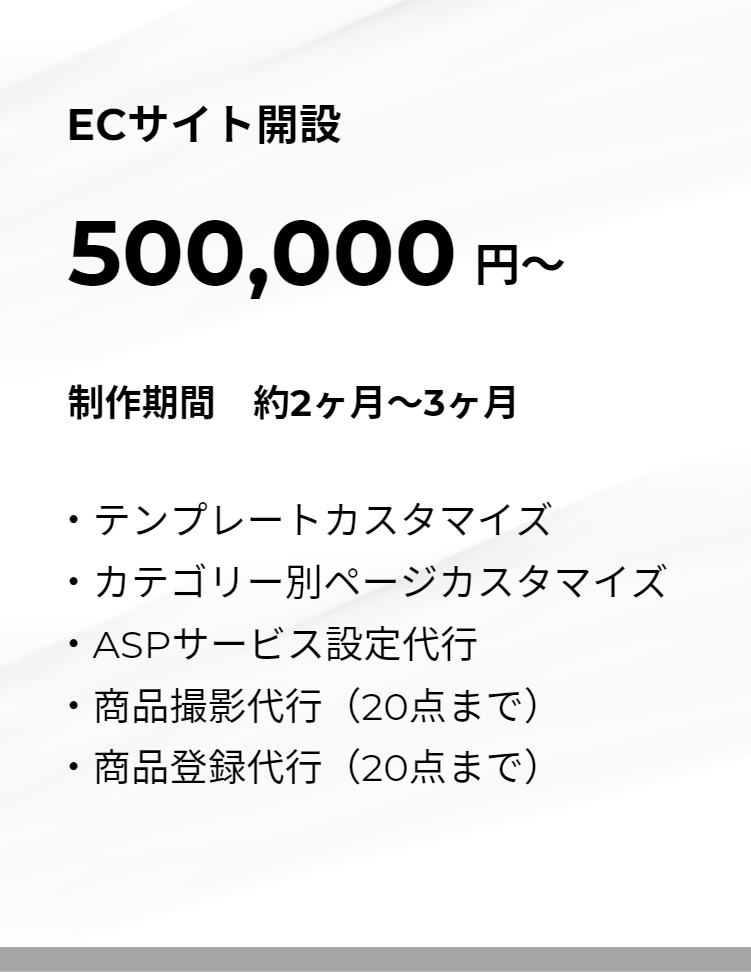 ※サーバーレンタル・ドメイン取得費用・各種ASP等のサービス利用料は含みません。