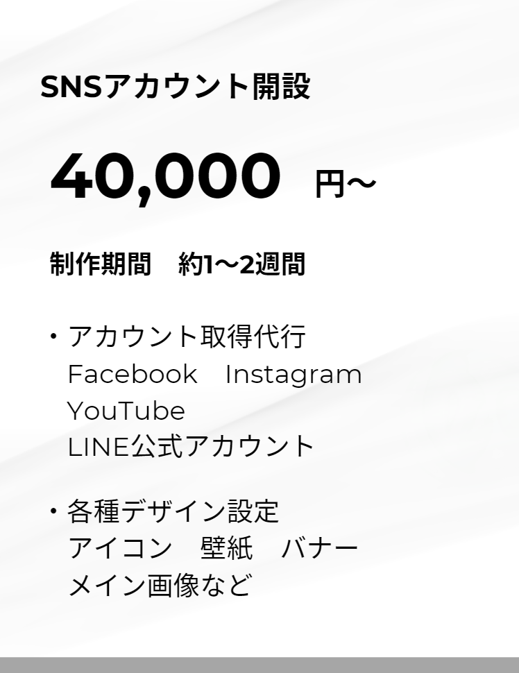 Twitter・Facebook・Instagram・LINEなど、各種SNSアカウントの開設や運用サポートをおこないます。